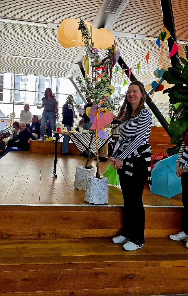 De Hawaii-krans die Dianne door cursiste Maria kreeg omgehangen in Utopia, was pas de eerste druppel van waardering die deze middag een stortbui werd. Tijd voor een Ethiopisch kopje koffie van Semira in het ‘Kleine café aan de haven’, dat uit volle borst werd meegezongen. Hier kreeg Dianne twee appelbomen, volgehangen met liefdevolle teksten in de vorm van hartjes en engeltjes.